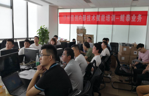 在这疫情特殊的时期,本次技术赋能培训采用了线上线下相结合的授课方式。线上录播的课程,学员们可以反复观看学习,线下的实验课程和考试地点安排在武汉平台,参加培训的学员共40名,分为两批,每批20人。培训的课程内容丰富,辅导扎实,方法灵活。虽然武汉的天气非常炎热,但是无法阻挡大家对学习jiuyou.com产品知识的热情,没有一名学员请假,更没有出现迟到早退等现象。在下午6点以后,楼内的中央空调就会关闭,教室内20名学员加上样机设备的运行,室温已达到40度以上,大家仍然在教室完成实验课程。全组成员相互交流,共同学习,共同提高。
