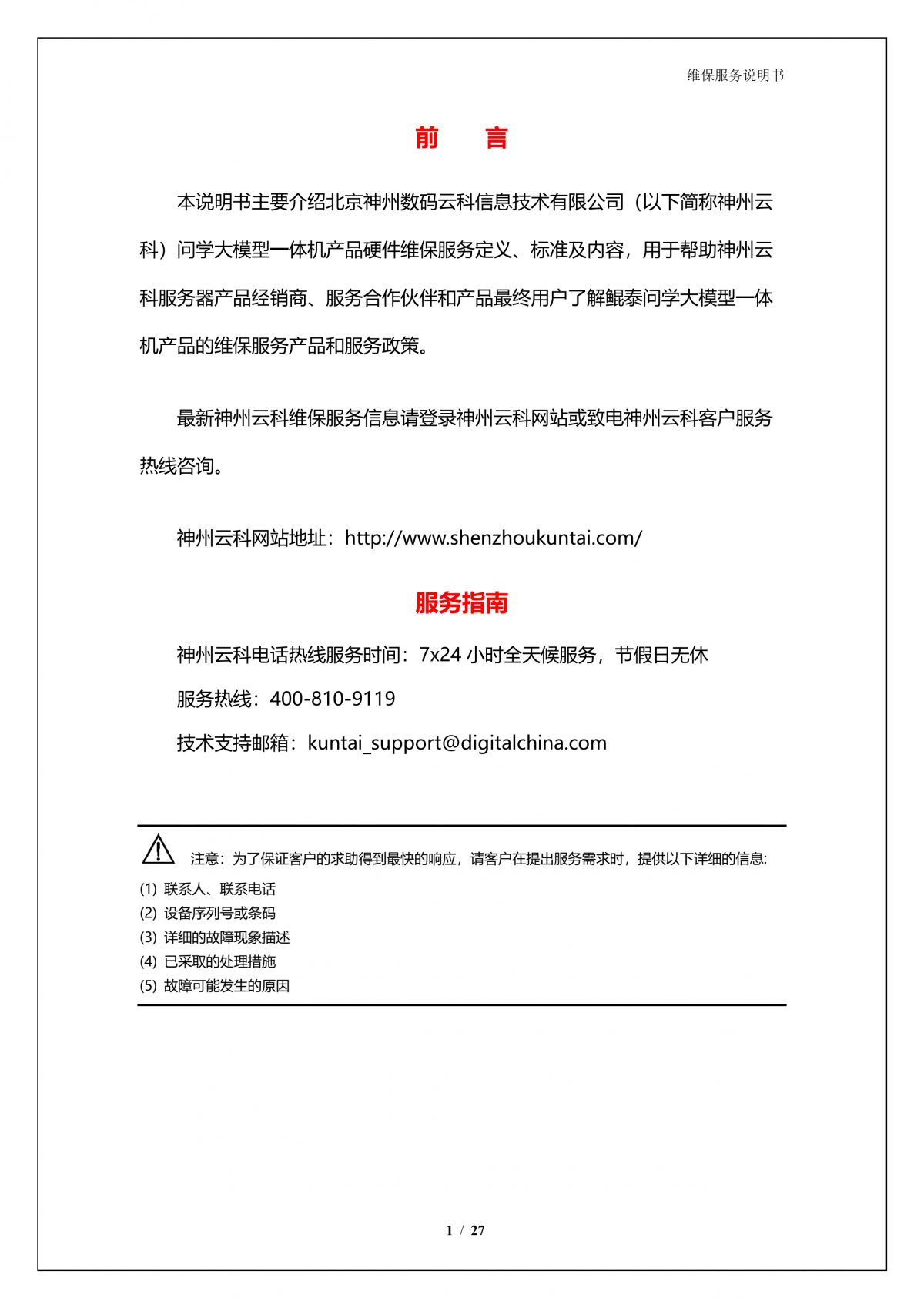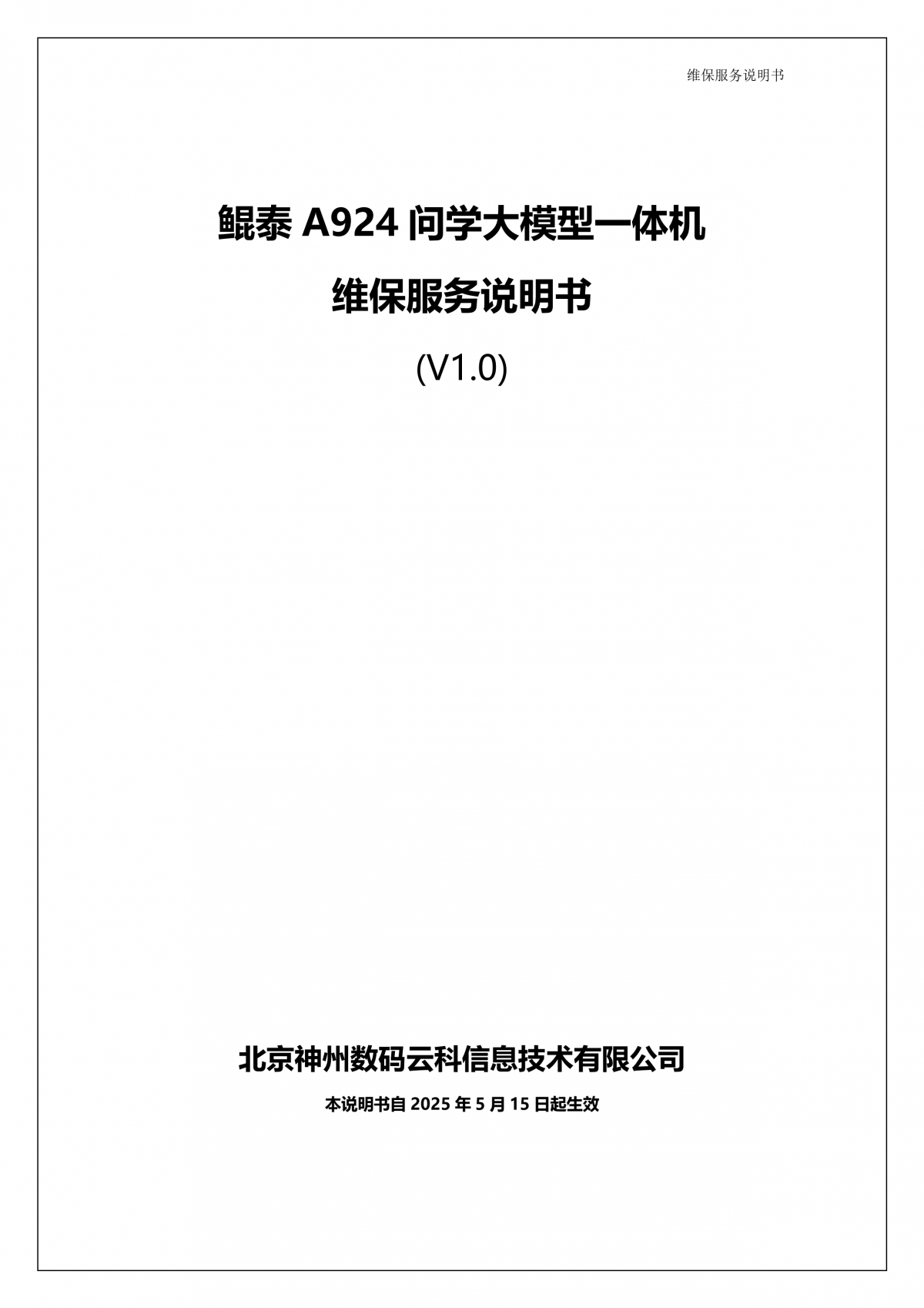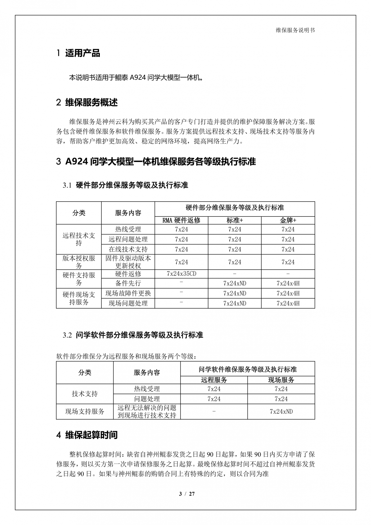 jiuyou.comA924 问学大模型一体机维保服务说明书_V1.0
