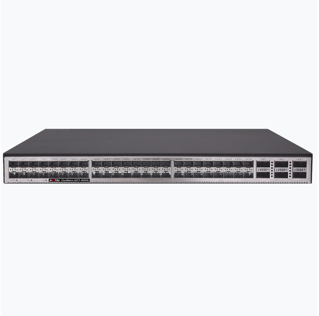 CloudMatrix 6657F-48S6CQ交换机提供 48 个 10GE SFP+接口,6 个100GE QSFP28 接 口 , 或 6 个 40GE QSFP+接口。支持前进后出或后进前出散热风道。